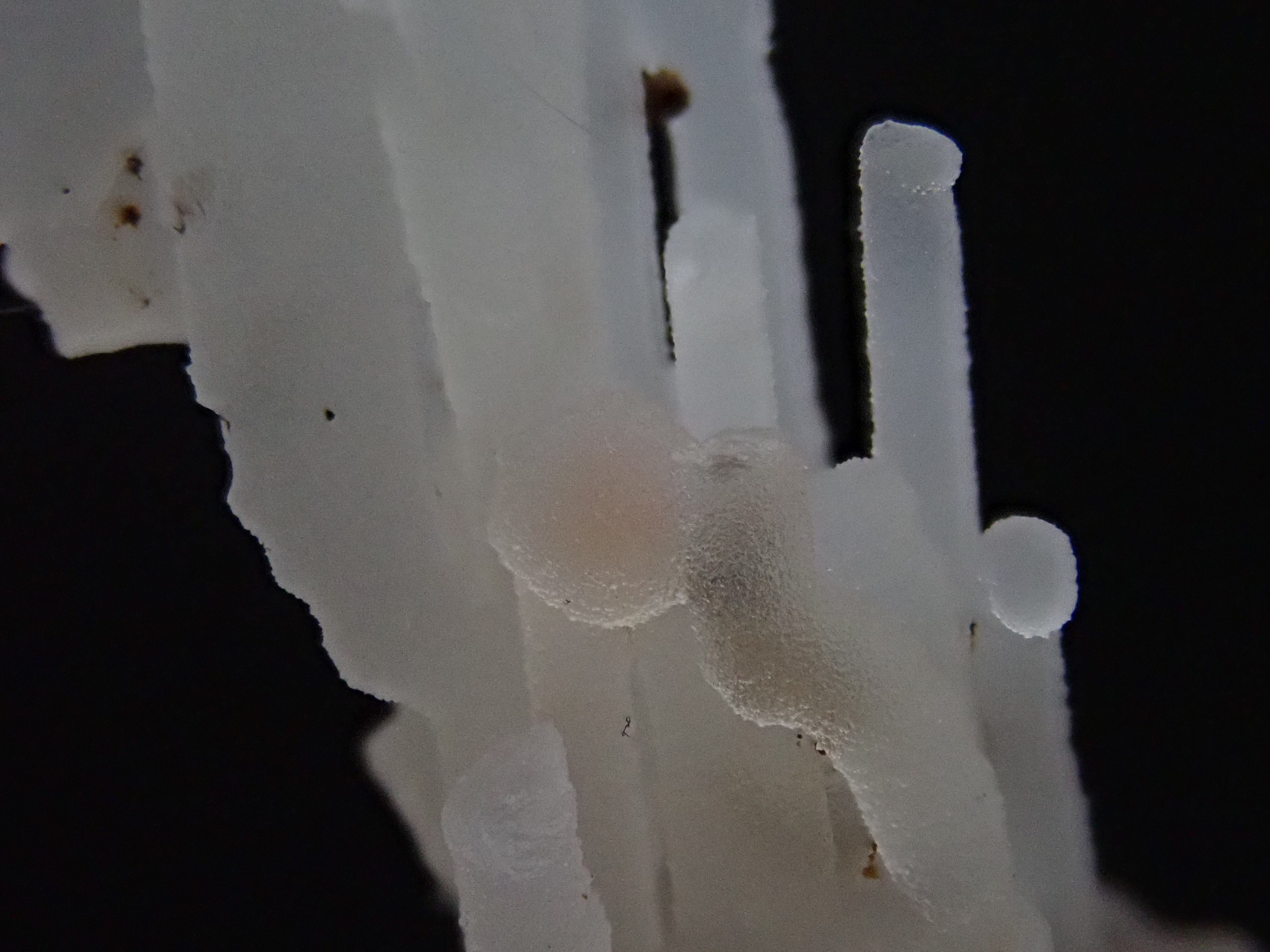 セラー曰く球状のピンクフローライトがしらたきのようなカルセドニーに結晶してるとのことですが、ピンク鉱物はカルセドニーに覆われて、真偽が不明なため