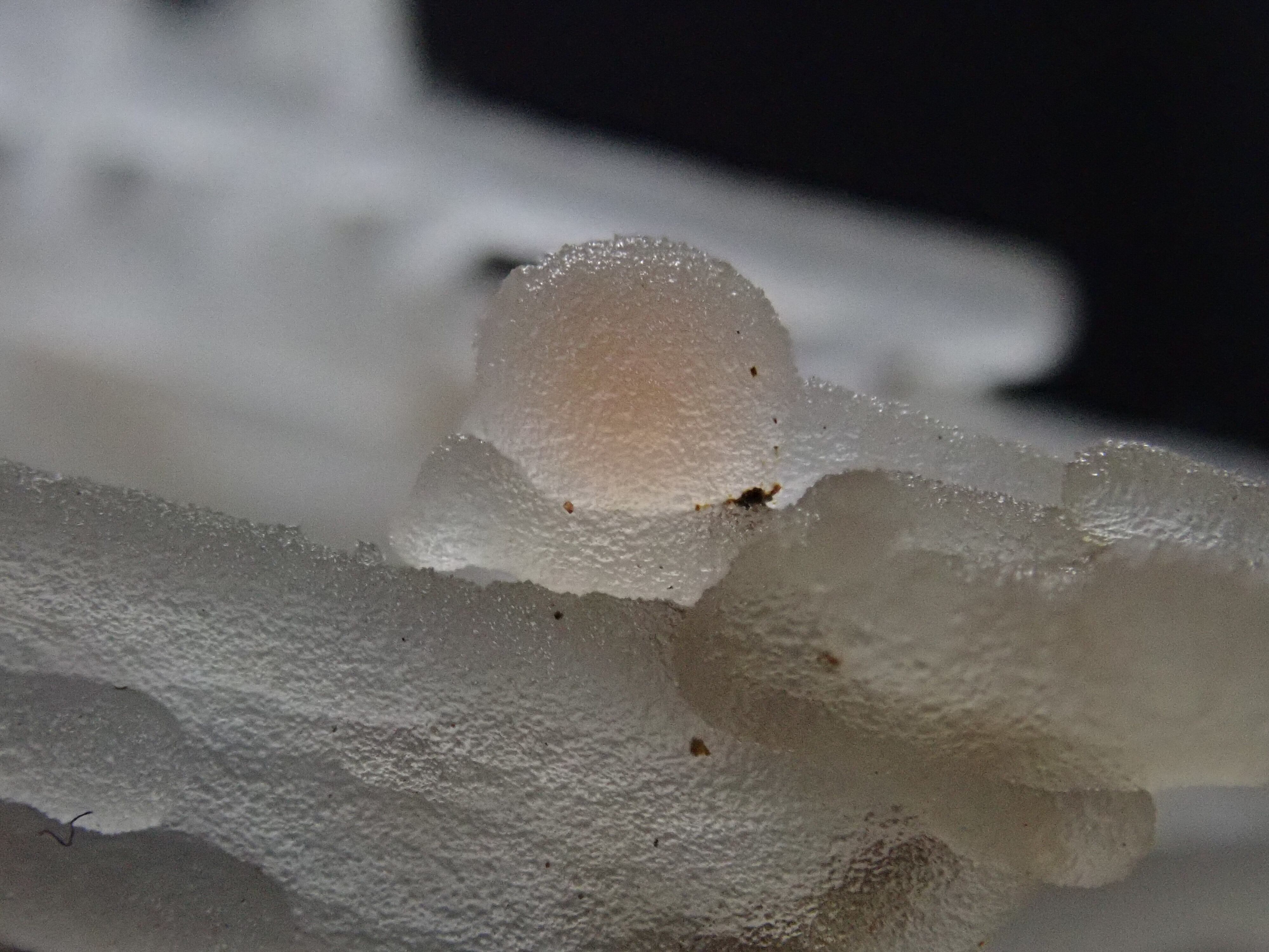 セラー曰く球状のピンクフローライトがしらたきのようなカルセドニーに結晶してるとのことですが、ピンク鉱物はカルセドニーに覆われて、真偽が不明なため