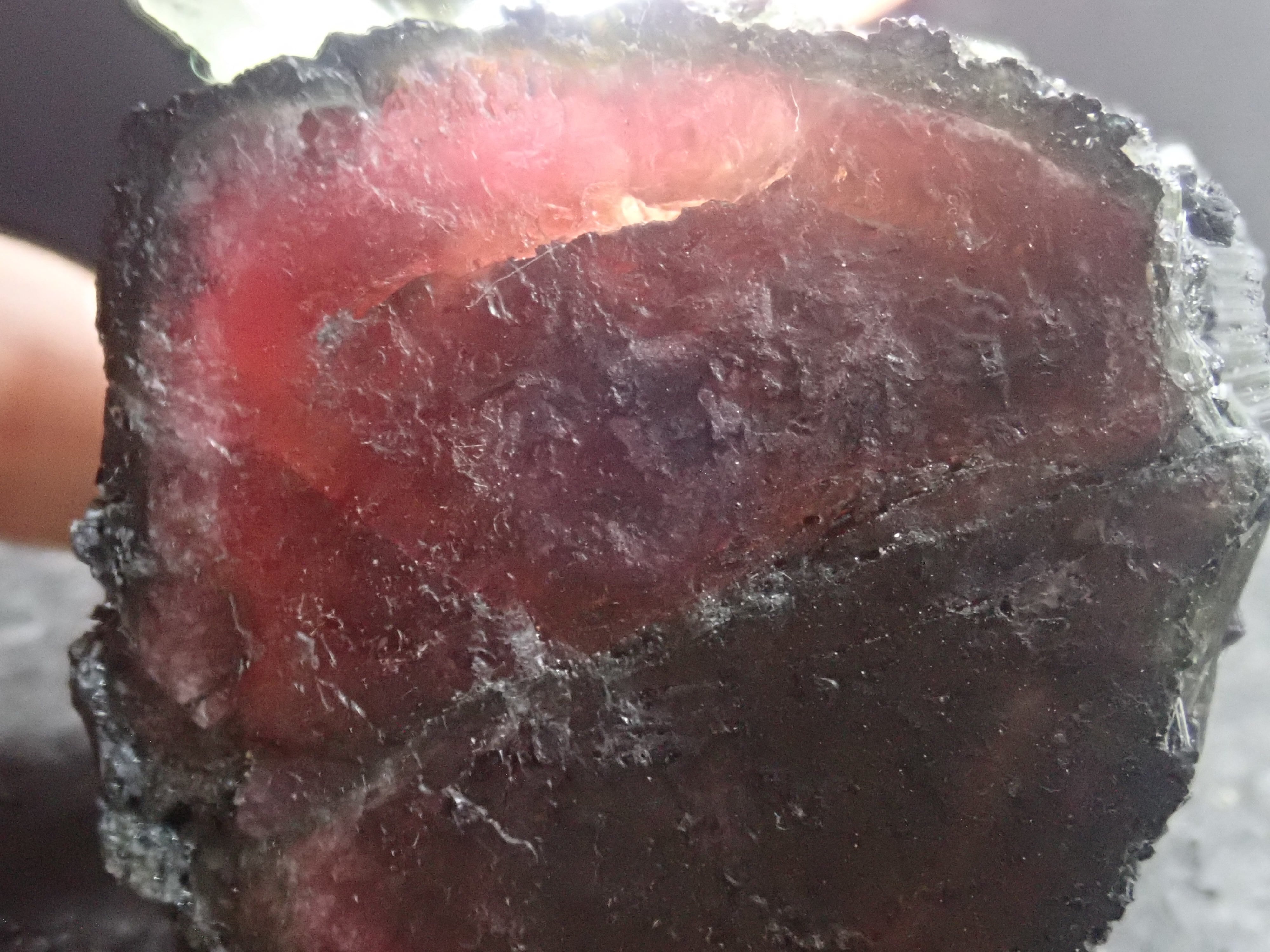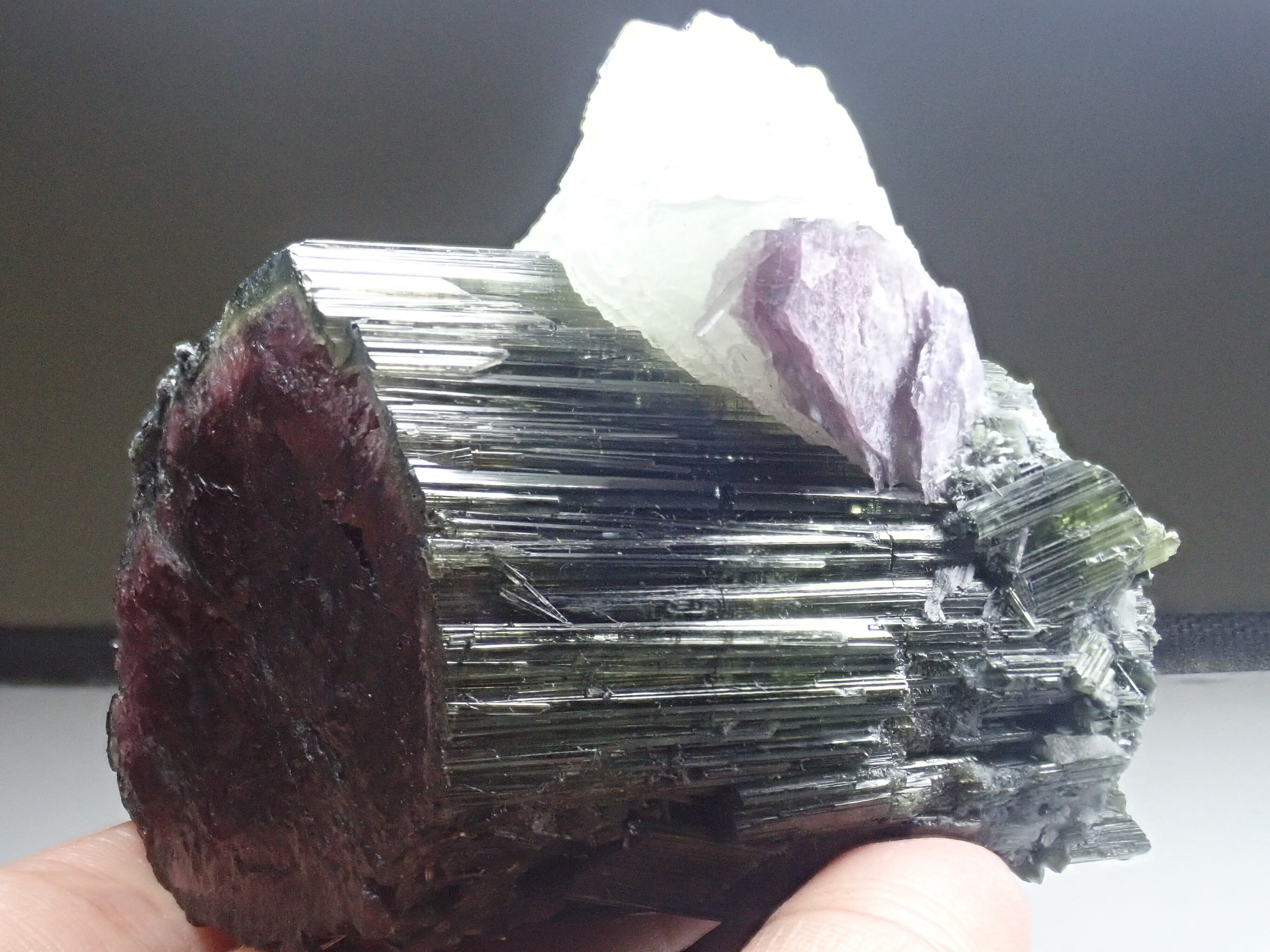 リペアなし。なかなか市場には出てこない特大なウォーターメロントルマリンにヒレのようなクリーブランダイトとレピドライトが結晶した200g超えの見応えある標本。