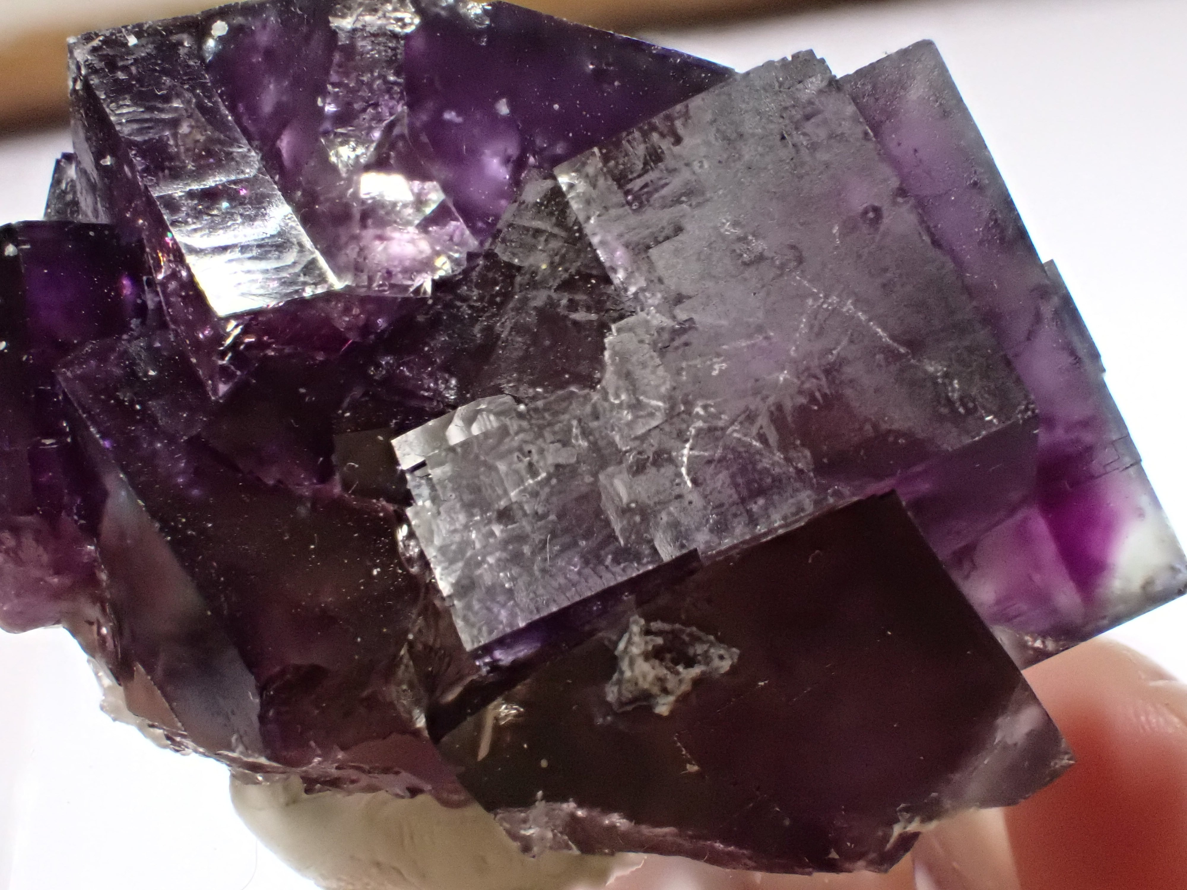 の紫、縁(フチ)にグリーンの色彩が美しいフローライトが観察できます。