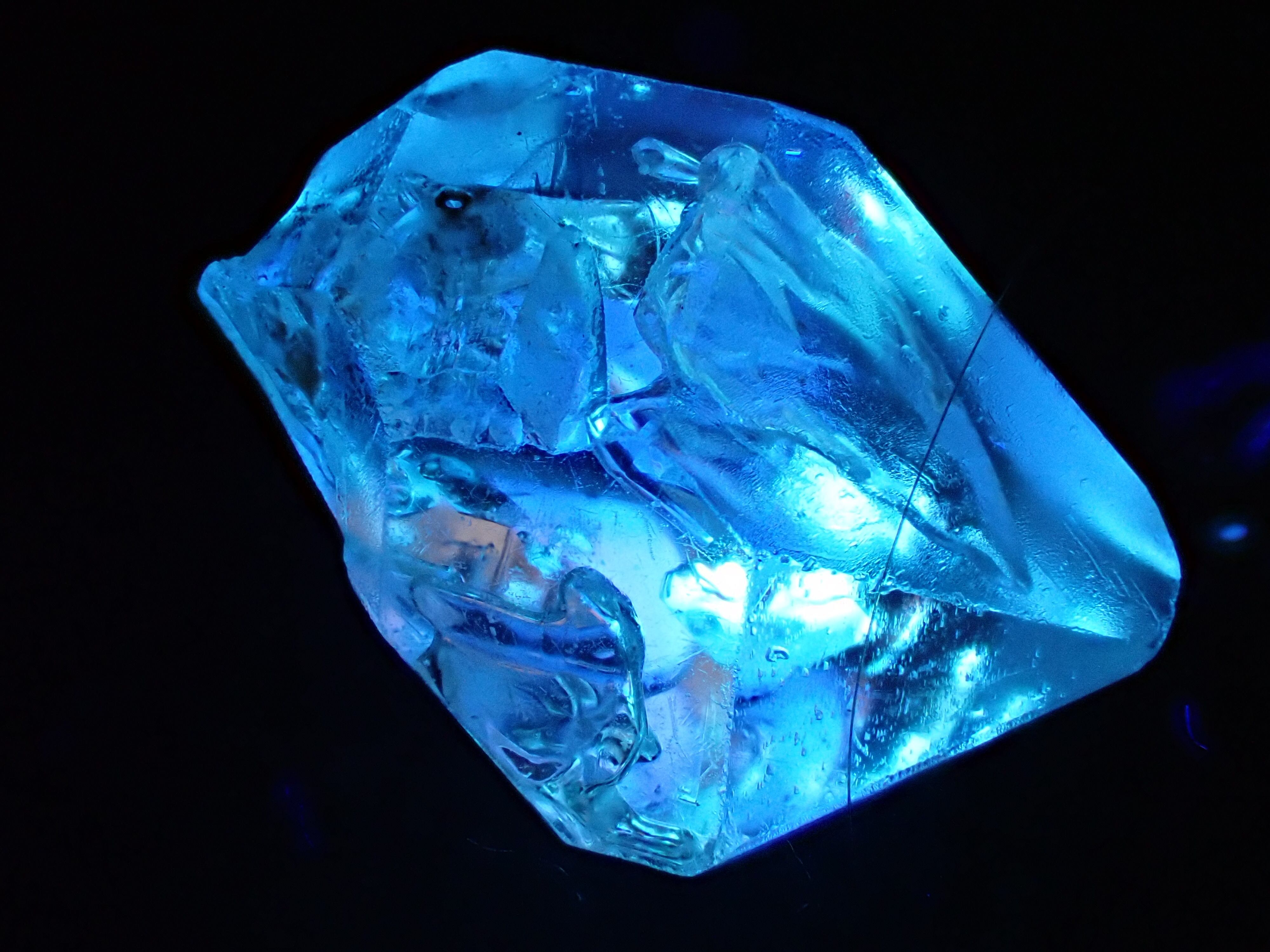 ブラックライト(紫外線)を当てると蛍光する特性があります。