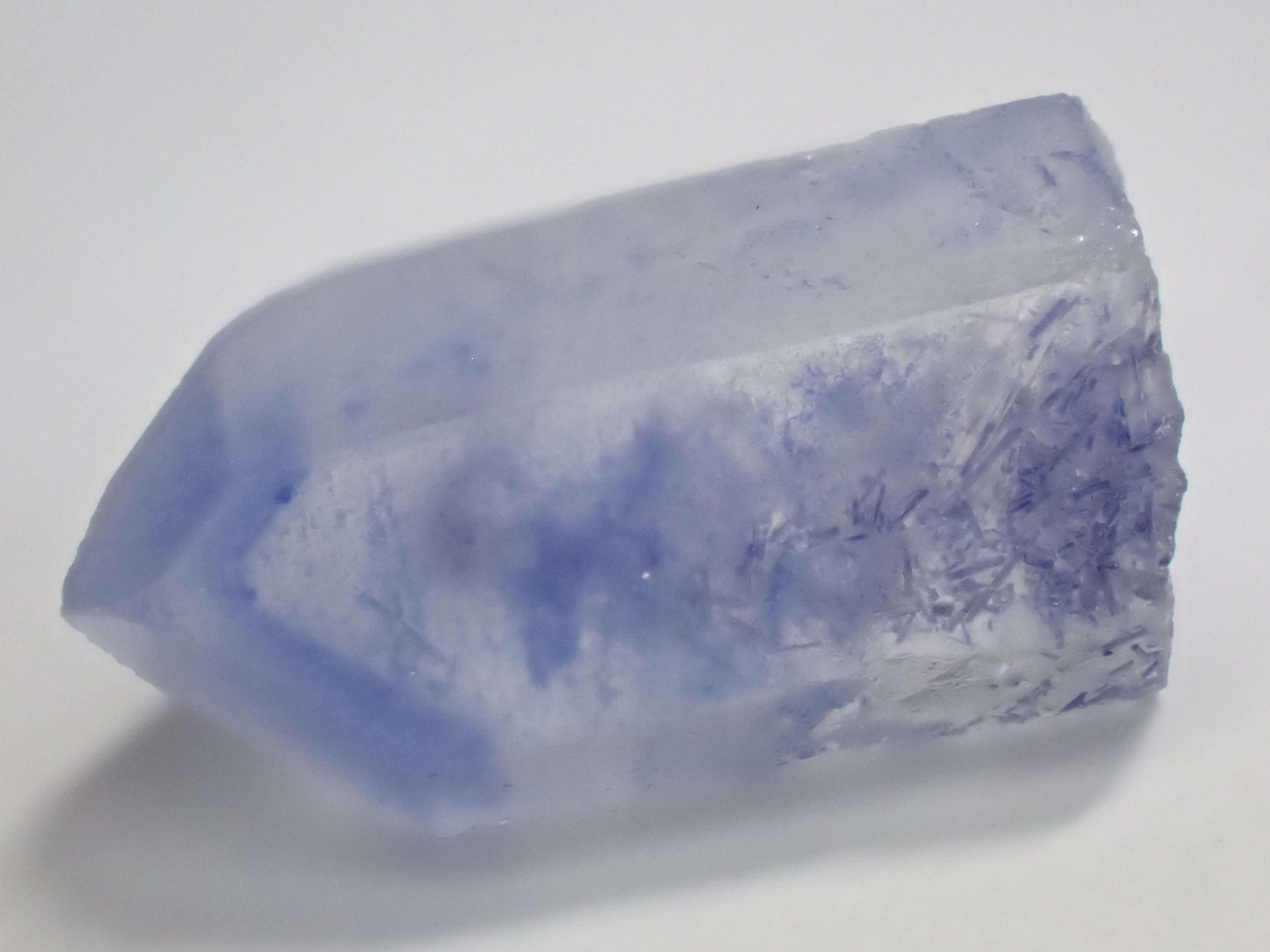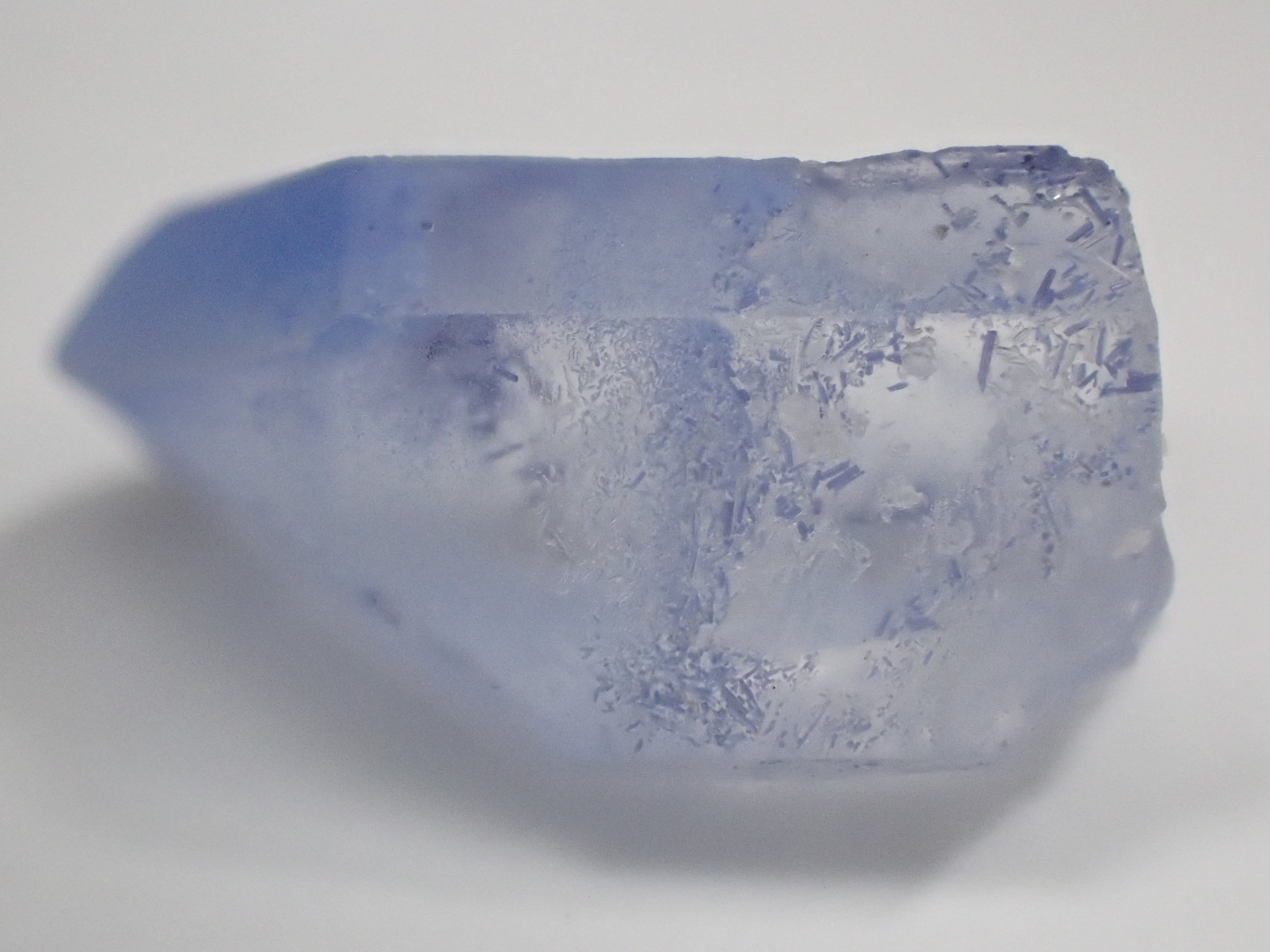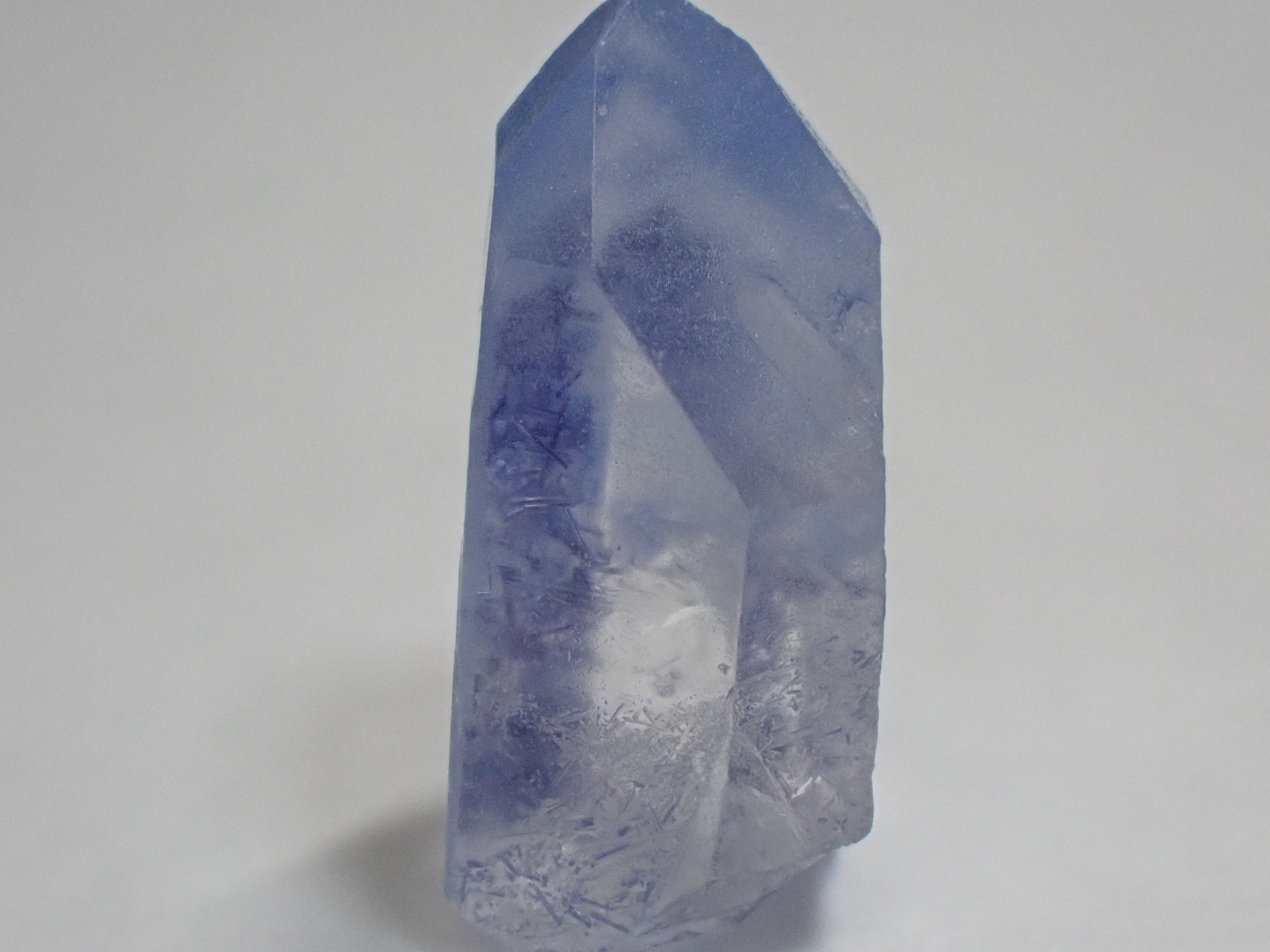 ブルー色のデュモルチェライト結晶が内包されたクォーツ原石。