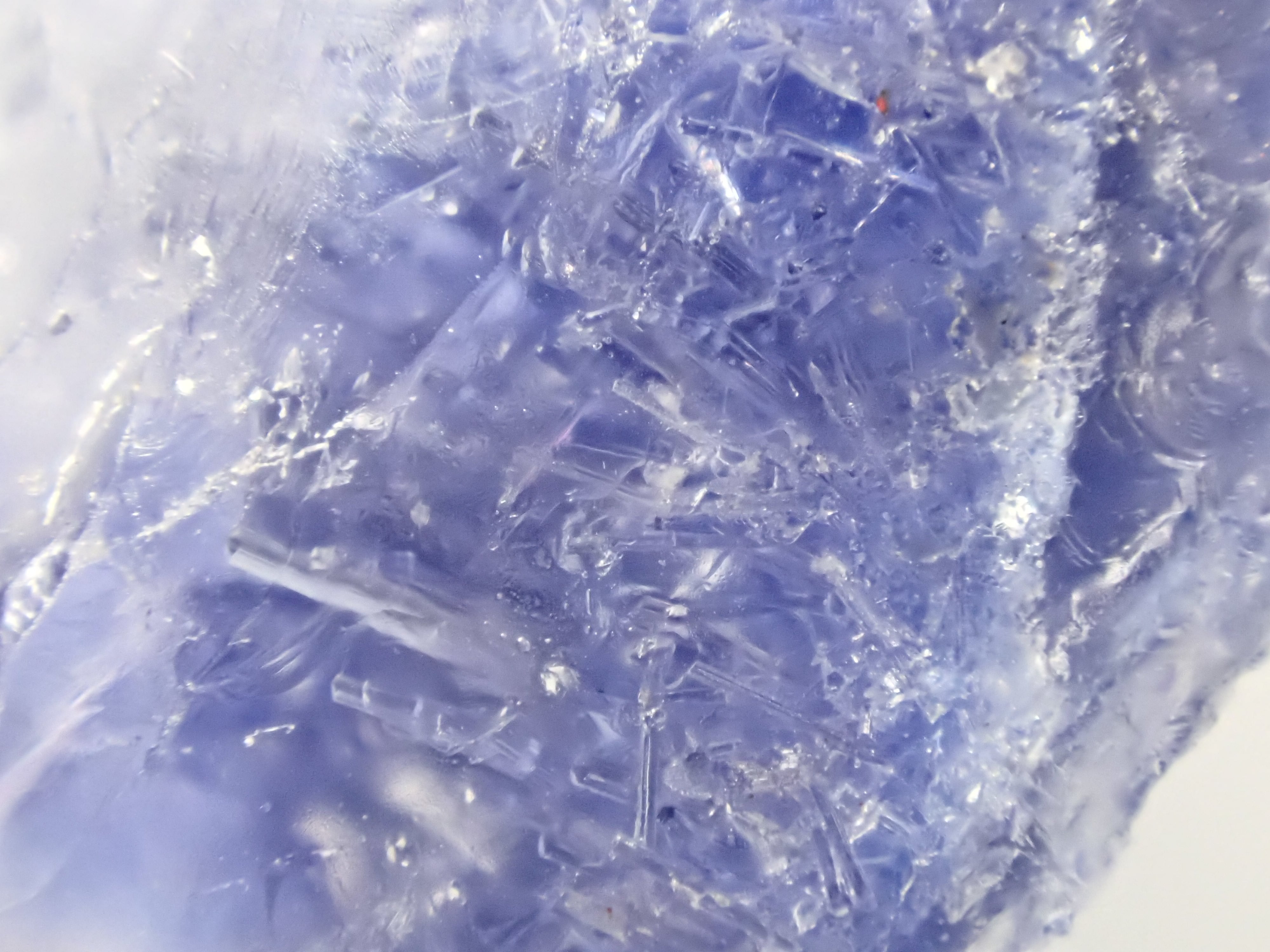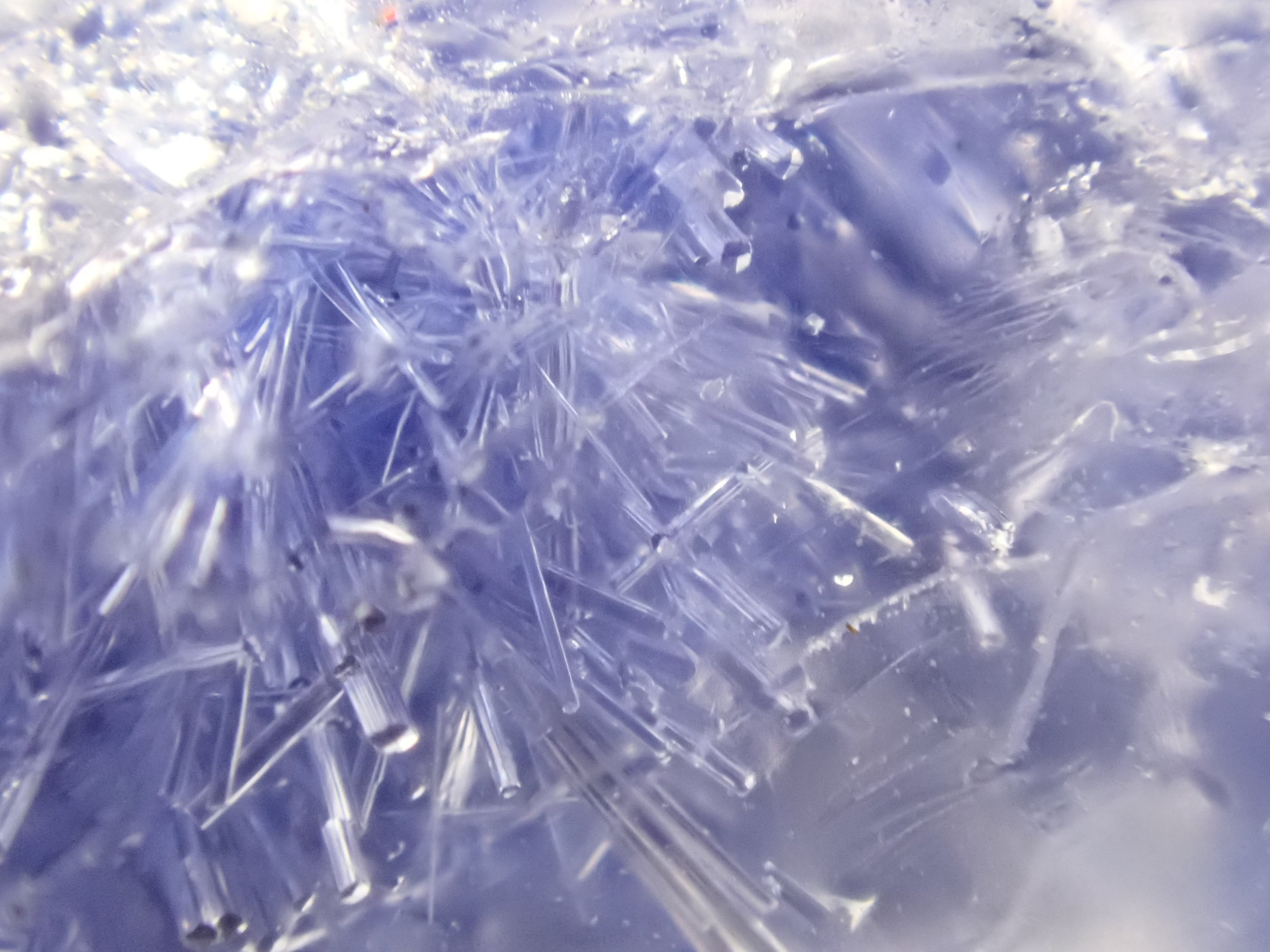 ブルー色のデュモルチェライト結晶が内包されたクォーツ原石。