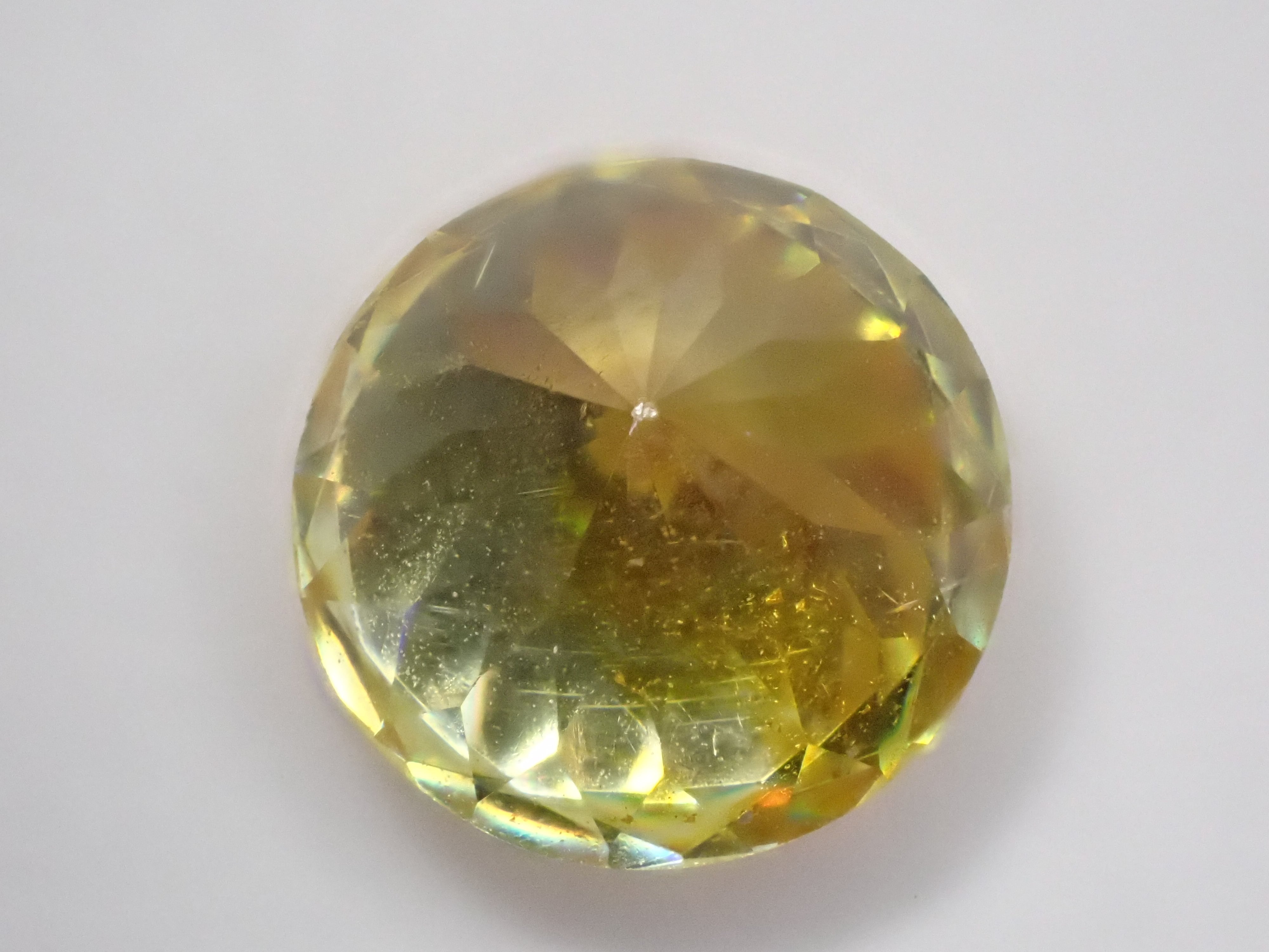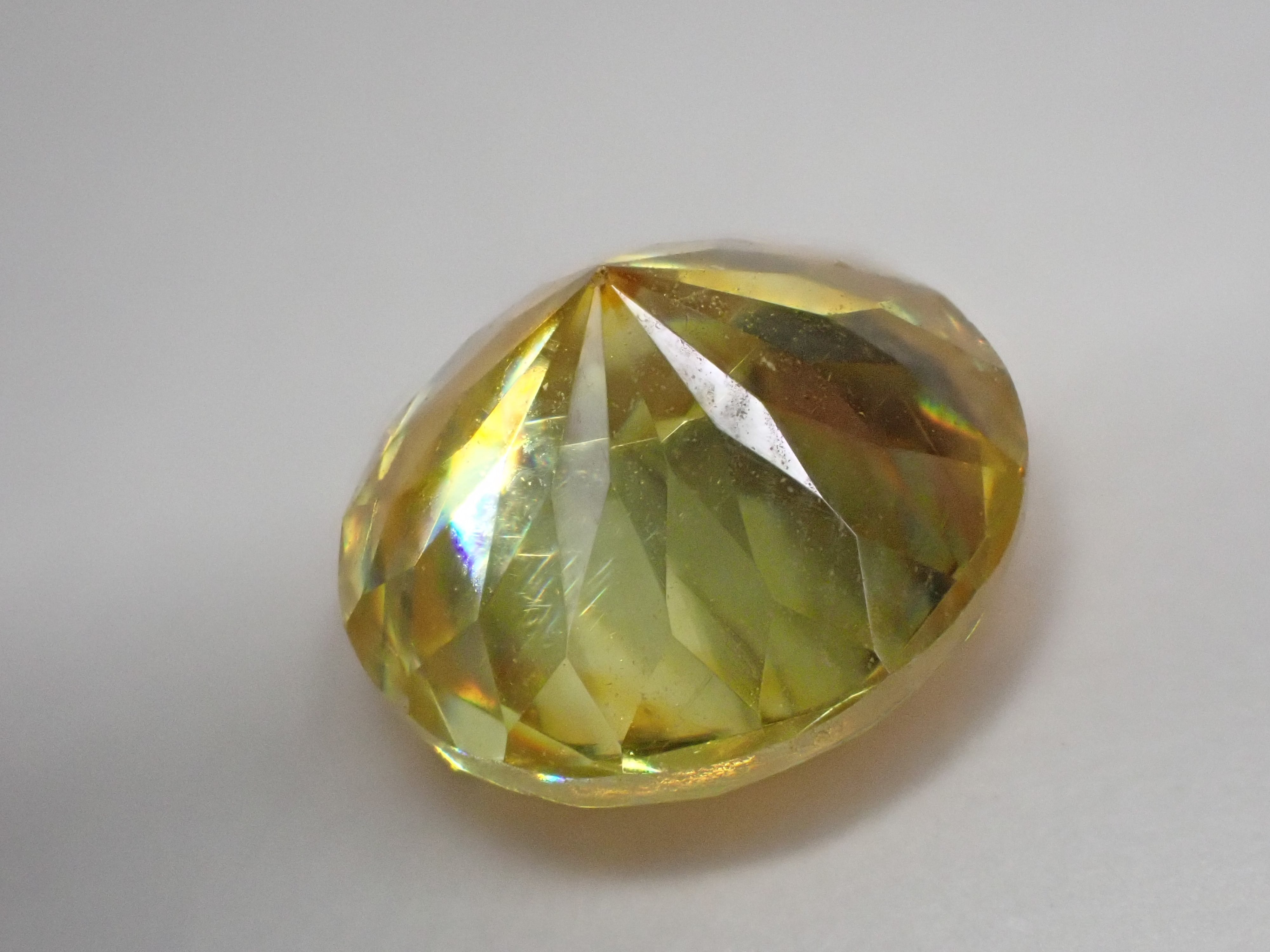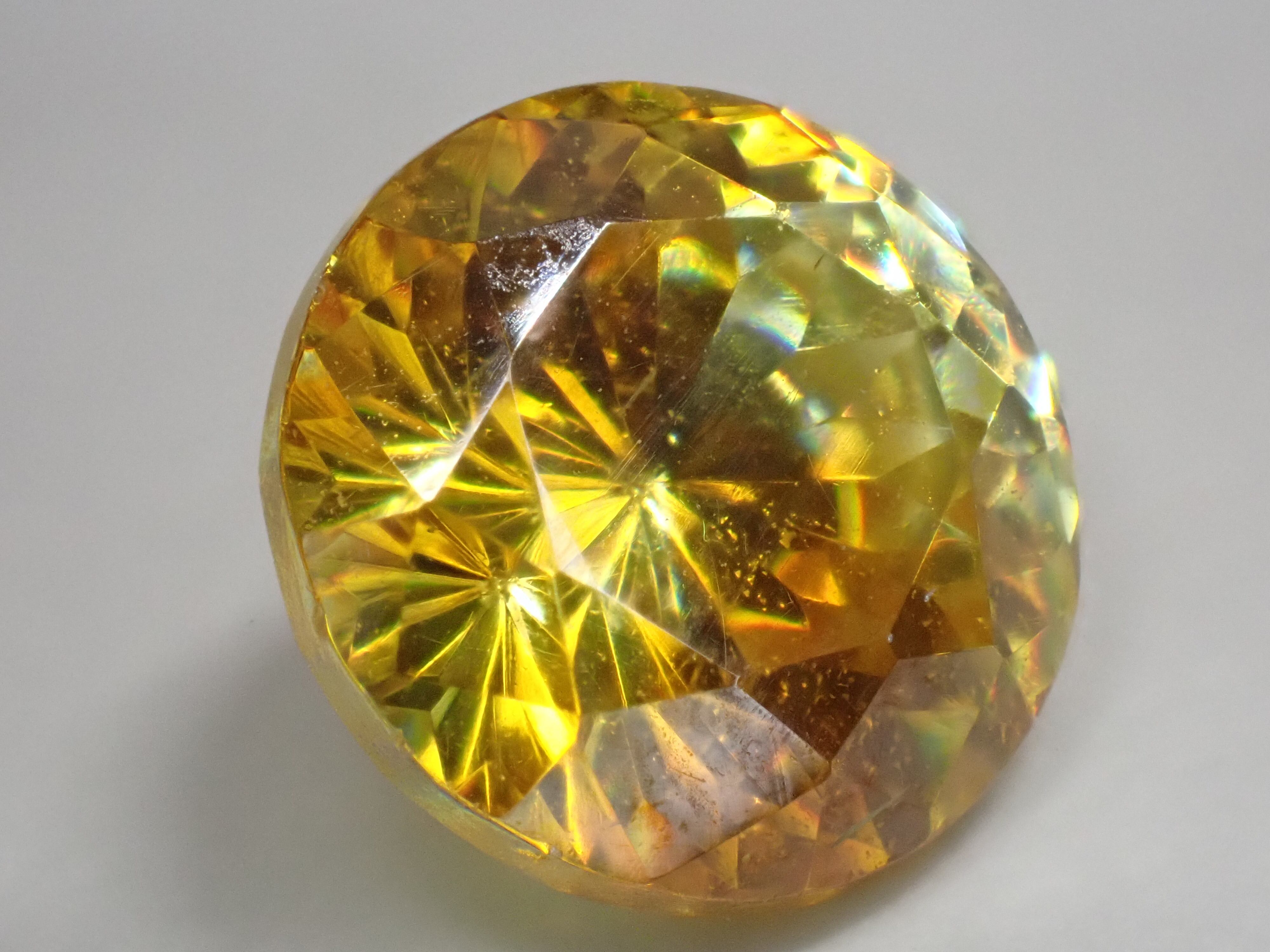 非常に高い分散を持ち、光を受けると強いファイアを見せるのが特徴の宝石。