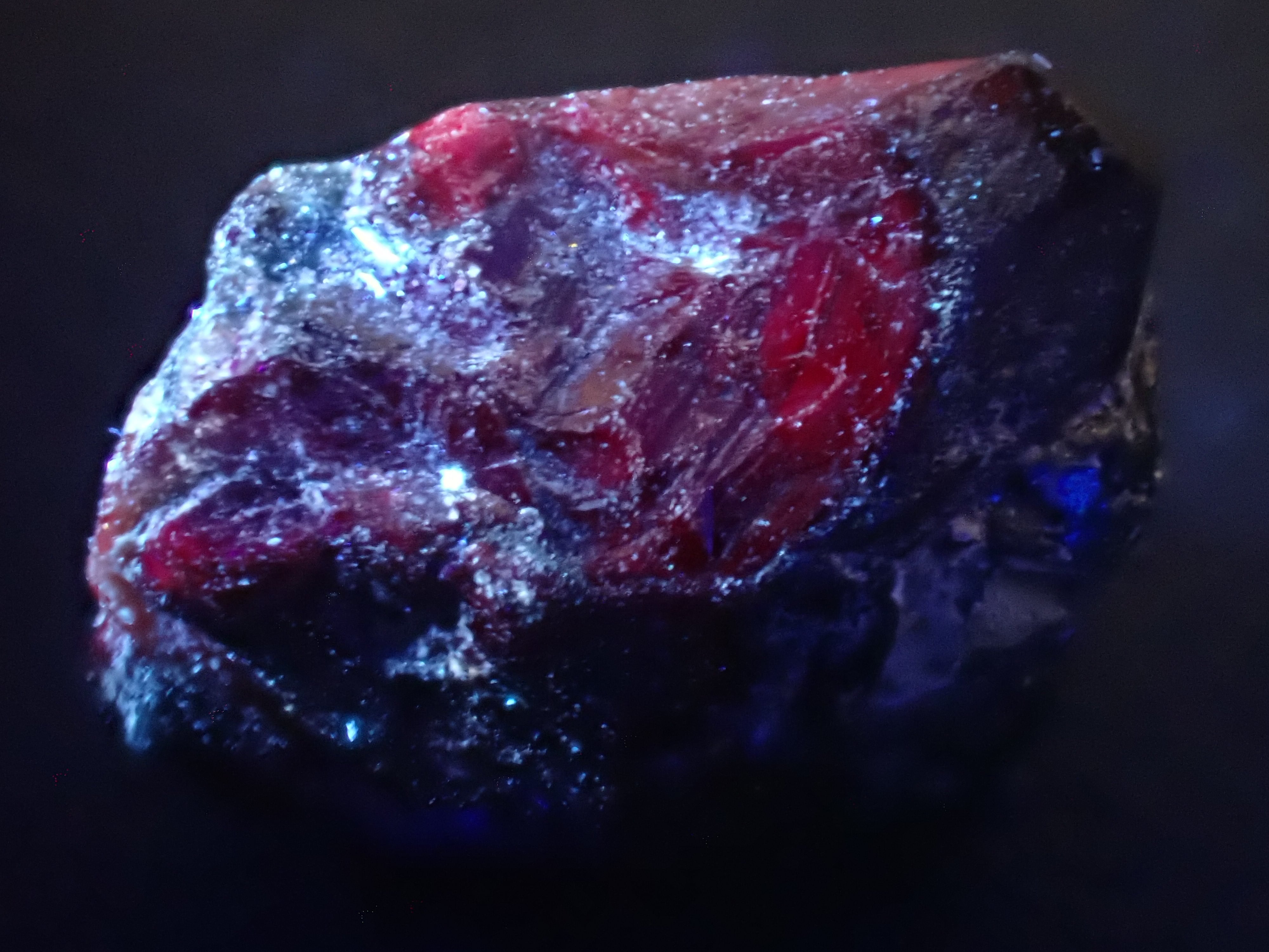 白熱灯下では赤紫へとUVライト下では赤系の蛍光にカラーチェンジし、アレキサンドライト特有の性質をお楽しみいただけます。