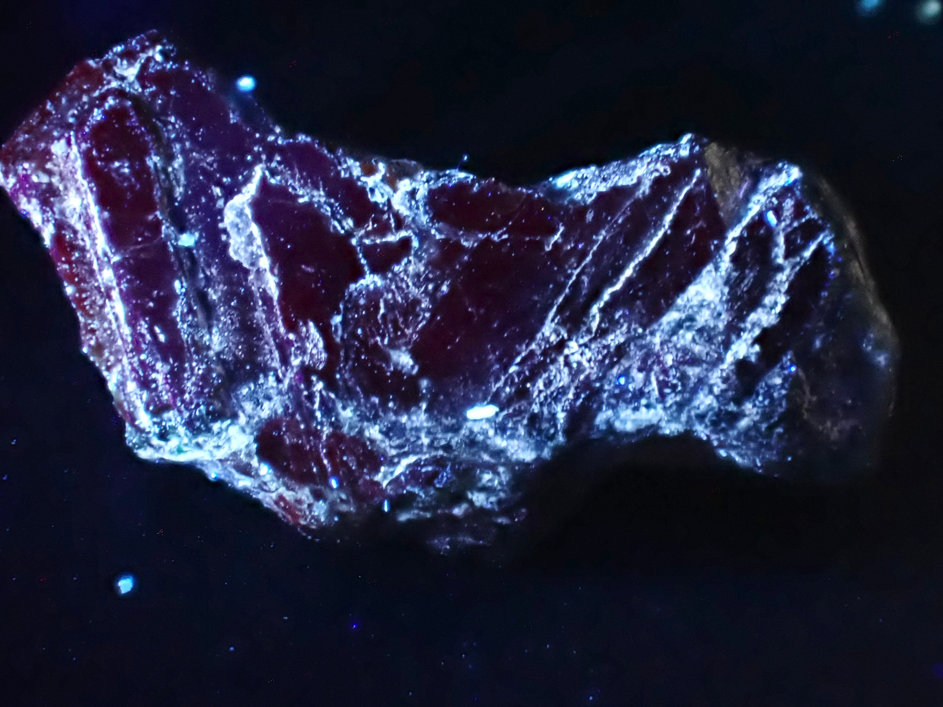 白熱灯下では赤紫へとUVライト下では赤系の蛍光にカラーチェンジし、アレキサンドライト特有の性質をお楽しみいただけます。